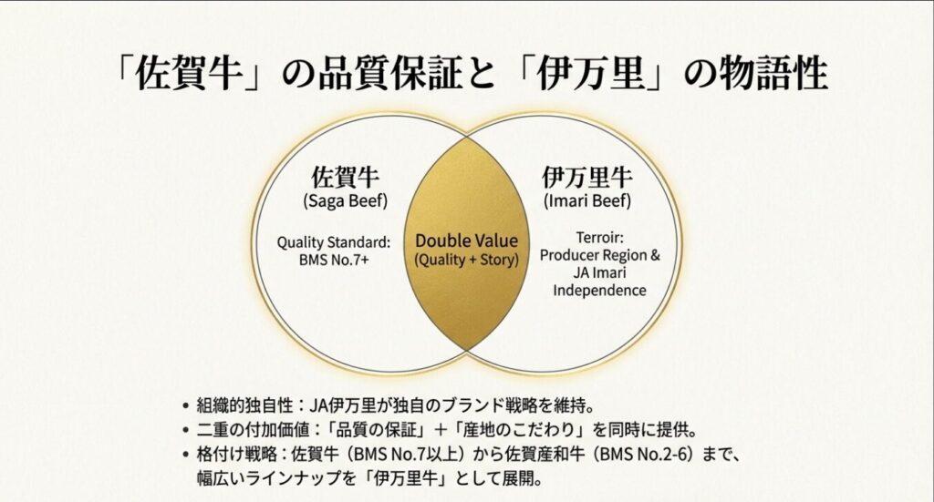 伊万里牛という名前は、お肉の品質の違いじゃなくて、農業協同組合の管轄エリアの違いでつけられてるんだ。