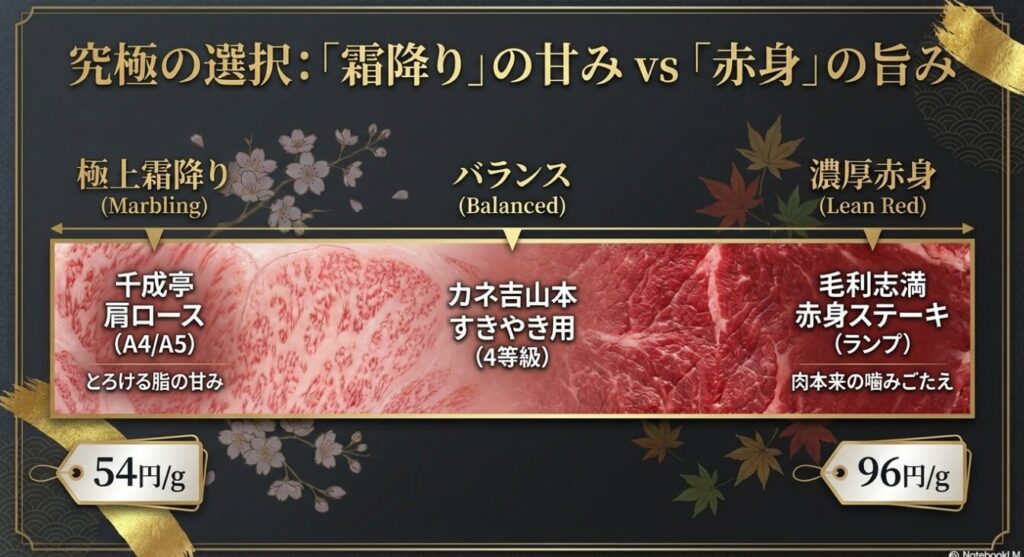 | カネ吉山本や毛利志満など有名店の味を楽しみたい人 | 霜降り肉の脂が極端に苦手で全く受け付けない人 |